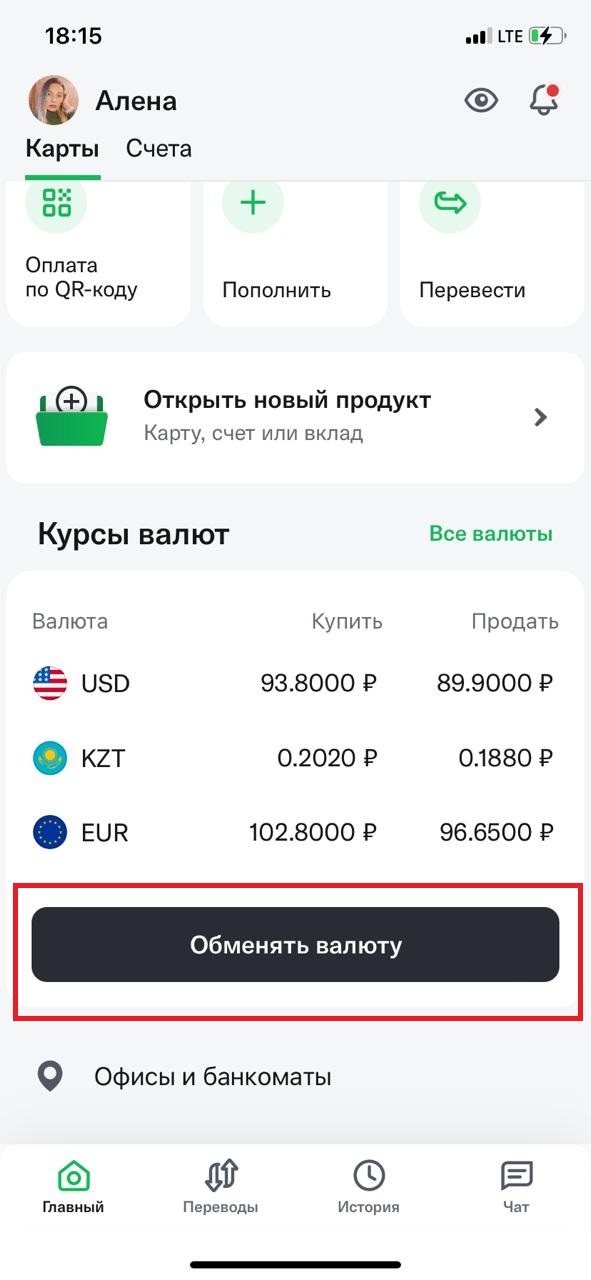Обменять валюту можно в приложении Цифра Банка в разделе «Обменять валюту»