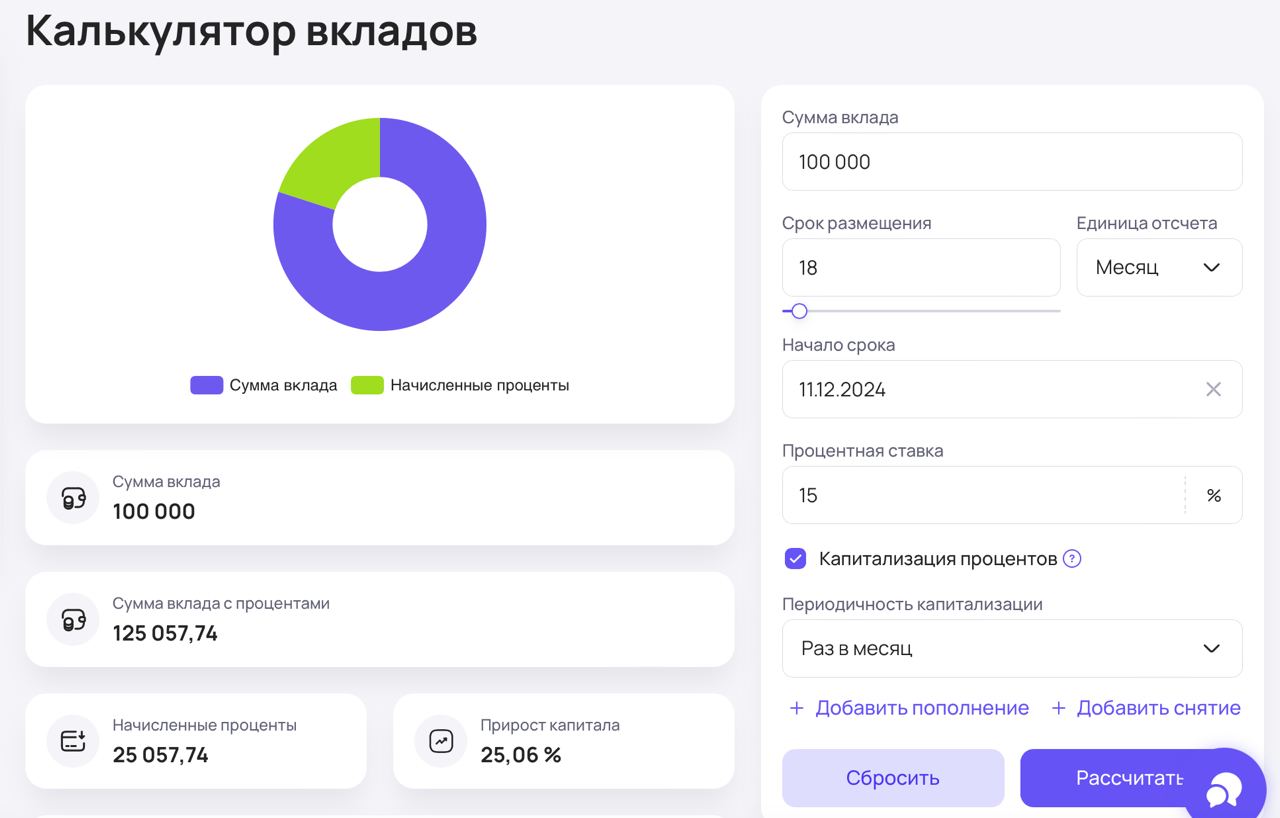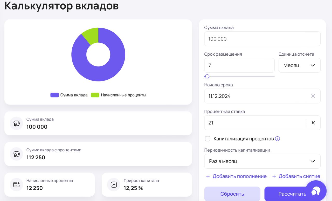 Вклад с пополнением и снятием будет давать около 15%Давайте посчитаем два варианта:1. При выполнении условий для получения высокого процента